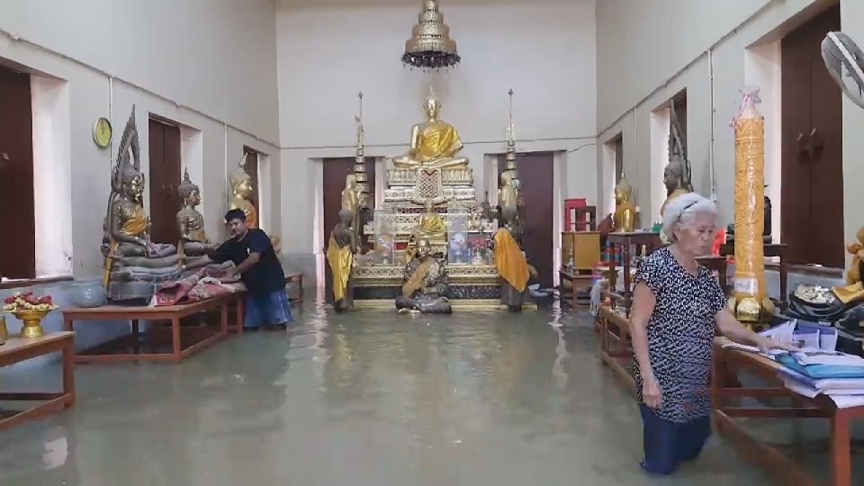 ขณะที่ จ.พระนครศรีอยุธยา ชาวบ้านตำบลสะพานไทย อำเภอบางบาล จังหวัดพระนครศรีอยุธยา และพระสงฆ์วัดไผ่ล้อม ช่วยกันขนย้ายสิ่งของภายในพระอุโบสถหลังเก่าขึ้นบนที่สูง หลังจากคลองบางบาลเอ่อท่วมอย่างต่อเนื่อง ซึ่งปกติน้ำจะท่วมบริเวณลานวัดและใต้ถุนของศาลาการเปรียญ แต่วันนี้น้ำไหลเข้าภายในพระอุโบสถ รวมทั้งชุมชนหมู่ 7 ต.ไทรน้อย น้ำท่วมสูงเช่นกัน.-สำนักข่าวไทย
