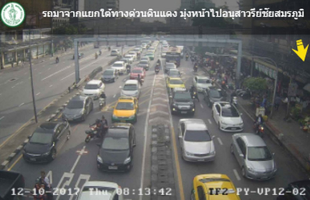 การจราจรถนนดินแดง จากใต้ด่วนดินแดง มุ่งหน้าอนุสาวรีย์ชัยฯ รถมาก เคลื่อนตัวช้า