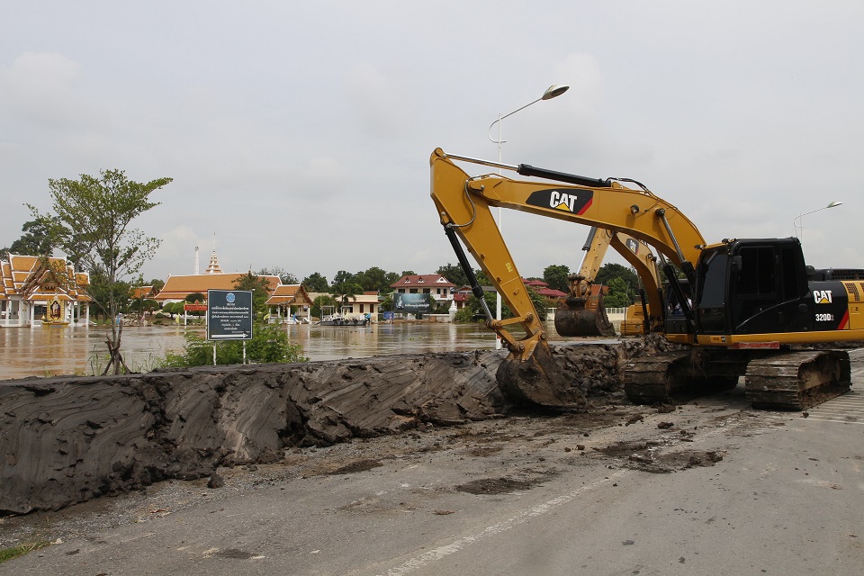 ว่าที่ ร.ต.สมทรง สรรโกศลกุล นายกเทศมนตรีนครพระนครศรีอยุธยา อำนวยการทำงานของเจ้าหน้าที่นำเครื่องจักรกลทำแนวคันดินบริเวณจุดเสี่ยงของเกาะเมืองกรุงเก่า เพื่อป้องกันแม่น้ำเจ้าพระยาเอ่อท่วมถนนอู่ทอง เนื่องจากขณะนี้ระดับน้ำใกล้ถึงแนวตลิ่ง พร้อมกันนี้ยังได้ตั้งเครื่องสูบน้ำขนาดใหญ่ไว้บริเวณประตูน้ำสระมณฑล หากน้ำไหลเข้าท่วม เพื่อป้องกันพื้นที่สำคัญ เพราะมีทั้งชุมชน ตลาด ท่ารถโดยสาร สถานที่ราชการ โรงเรียน และโบราณสถานหลายแห่ง