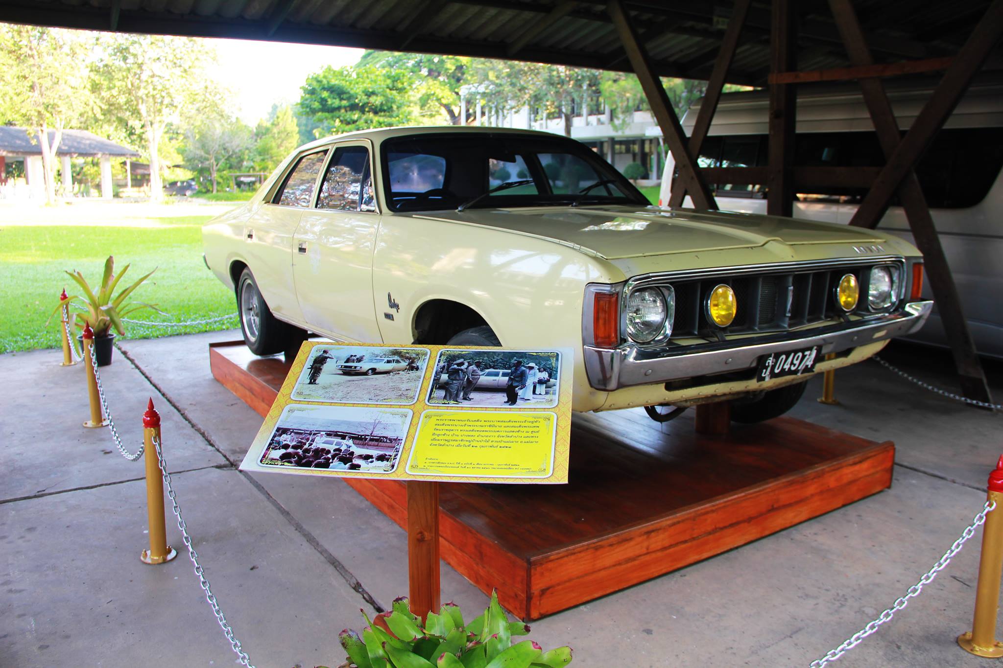 บรรยากาศภายในสำนักงานองค์การอุตสาหกรรมป่าไม้ (ออป.) ภาคเหนือตอนบน และสำนักงานทรัพยากรธรรมชาติและสิ่งแวดล้อมจังหวัดลำปาง ต.เวียงเหนือ อ.เมือง ประชาชนและนักท่องเที่ยว รวมถึงนายสุวัฒน์ พรมสุวรรณ ผู้ว่าราชการจังหวัดลำปาง เดินทางมาชมและถ่ายรูปพระราชพาหนะเก็บไว้เป็นที่ระลึก ซึ่งเป็นรถยนต์ ยี่ห้อ DODGE 4 ประตู สีเหลืองไข่ไก่ ทะเบียน ลป 04974 ระบบขับเคลื่อนแบบออโตเมติก สภาพตัวรถและภายในรถยังคงมีความสมบูรณ์ ทาง ออป.ได้ดูแลรักษาและจอดเก็บไว้ภายในโรงรถเป็นอย่างดี หลังจากนำรถคันดังกล่าวใช้เป็นพระราชพาหนะรับเสด็จฯ พระบาทสมเด็จพระปรมินทรมหาภูมิพลอดุลยเดช สมเด็จพระนางเจ้าฯ พระบรมราชินีนาถ และสมเด็จพระเทพรัตนราชสุดาฯ สยามบรมราชกุมารี เสด็จฯ มาทอดพระเนตรการแสดงช้าง ณ ศูนย์ฝึกลูกช้างบ้านปางหละ อ.งาว จ.ลำปาง และทรงเยี่ยมราษฏรหมู่บ้านป่าไม้ สวนป่าแม่เมาะ อ.แม่เมาะ จ.ลำปาง เมื่อวันที่ 21 กุมภาพันธ์ 2521