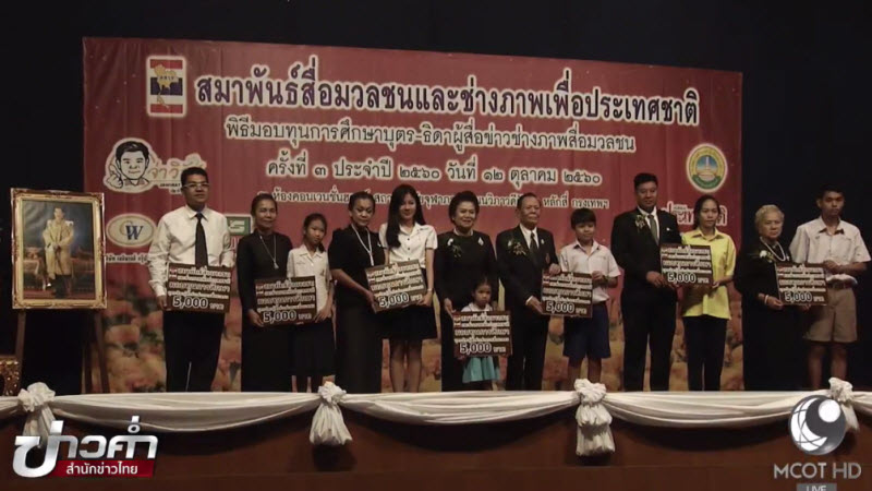 กรุงเทพฯ 12 ต.ค. – สมาพันธ์สื่อมวลชนและช่างภาพเพื่อประเทศชาติ จัดพิธีมอบทุนการศึกษาแก่บุตร-ธิดา ผู้สื่อข่าว ช่างภาพสื่อมวลชน ครั้งที่ 3 ประจำปี 2560 ที่สถาบันวิจัยจุฬาภรณ์ โดยมีบุตร-ธิดาสมาชิกสมาพันธ์สื่อมวลชนฯ 32 คน เข้ารับทุน เพื่อเป็นขวัญกำลังใจในการศึกษาเล่าเรียนแก่เยาวชนที่จะเติบโตเป็นอนาคตที่สำคัญของประเทศชาติ และเป็นการแบ่งเบาภาระค่าใช้จ่ายให้กับผู้ปกครอง. – สำนักข่าวไทย