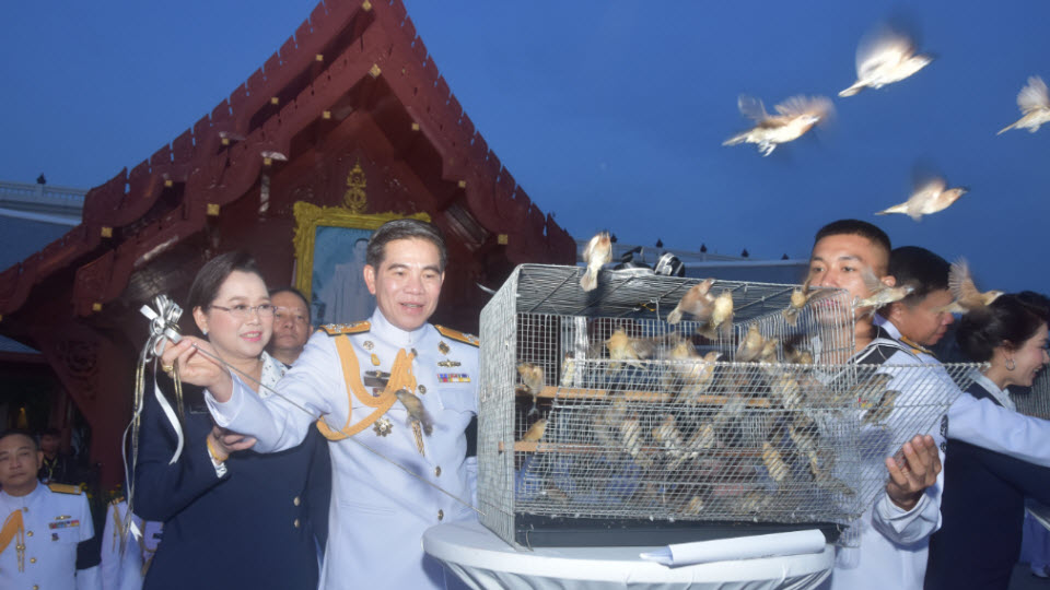 พล.ร.อ. ลือชัย รุดดิษฐ์ รองผู้บัญชาการทหารเรือ เป็นประธานในพิธีตักบาตรพระสงฆ์ จำนวน 199 รูป ถวายเป็นพระราชกุศล เนื่องในครบ 1 ปี วันสวรรคตของพระบาทสมเด็จพระปรมินทรมหาภูมิพลอดุลยเดช ณ ลานทัศนาภิรมย์ หอประชุมกองทัพเรือ จากนั้น รองผู้บัญชาการทหารเรือ และผู้บังคับบัญชาระดับสูง ร่วมในกิจกรรมปล่อยนกกระติ๊บ 889 ตัว และปล่อยพันธุ์ปลาน้ำจืด ประกอบด้วย ปลาตะเพียนขาว ปลาสร้อยขาว และปลายี่สก จำนวน 18,889 ตัว เพื่อถวายเป็นพระราชกุศล ณ ท่าเทียบเรือ บริเวณหน้าหอประชุมกองทัพเรือ