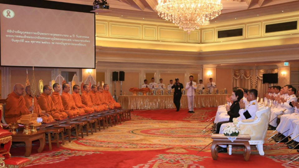 กองทัพบก 13 ต.ค.- พล.อ.เฉลิมชัย สิทธิสาท ผู้บัญชาการกองทัพบก เป็นประธานพิธีบำเพ็ญกุศล เพื่อถวายพระราชกุศล ครบ 1 ปี วันสวรรคต ของพระบาทสมเด็จพระปรมินทรมหาภูมิพลอดุลยเดช โดยมีพิธีทำบุญตักบาตรพระสงฆ์ จำนวน 89 รูป ถวายพระราชกุศล ณ หน้าลานบรมราชานุสาวรีย์ รัชกาลที่ 5 และพิธีสวดพระพุทธมนต์ โดยพระสงฆ์ 10 รูป ภายในพิธีมีกำลังพลที่ปฏิบัติงานภายในกองบัญชาการกองทัพบก ผู้บังคับหน่วยทหารในพื้นที่ กทม. และ สมาคมแม่บ้านทหารบกเข้าร่วมอย่างพร้อมเพรียง