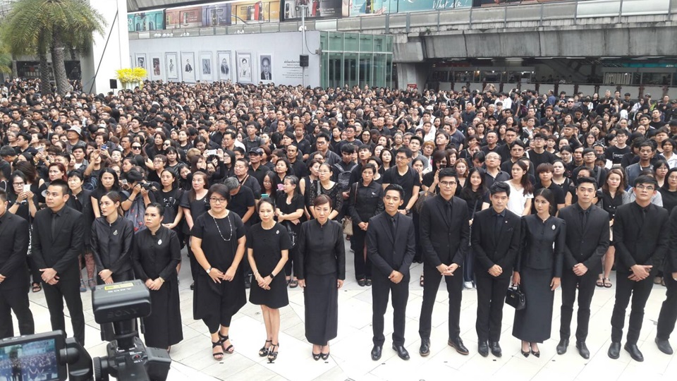 ประชาชนเนืองแน่น เข้าร่วมกิจกรรม ใต้แสงแห่งพระบารมี ครบรอบ 1 ปีวันสวรรคตพระบาทสมเด็จพระปรมินทรมหาภูมิพลอดุลยเดช ณ พาร์คพารากอน ศูนย์การค้าสยามพารากอน ด้วยน้อมสำนึกในพระมหากรุณาธิคุณ โดยเกิดขึ้นในเวลา 15.52 น. ซึ่งเป็นช่วงเวลาเดียวกับที่พระบาทสมเด็จพระปรมินทรมหาภูมิพลอดุลยเดช เสด็จสวรรคต เพื่อแสดงความอาลัยและรำลึกในพระมหากรุณาธิคุณอันหาที่สุดมิได้ของพระองค์ที่ได้ทรงอุทิศพระวรกายในการทรงงานหนักมาตลอดพระชนม์ชีพ เพื่อบำบัดทุกข์ บำรุงสุข ให้แก่ราษฎร วันนั้นทุกคนจะพร้อมใจแสดงความจงรักภักดี ให้แสงแห่งพระบารมีของพ่อส่องสว่าง งดงามทั้งแผ่นดินสยาม