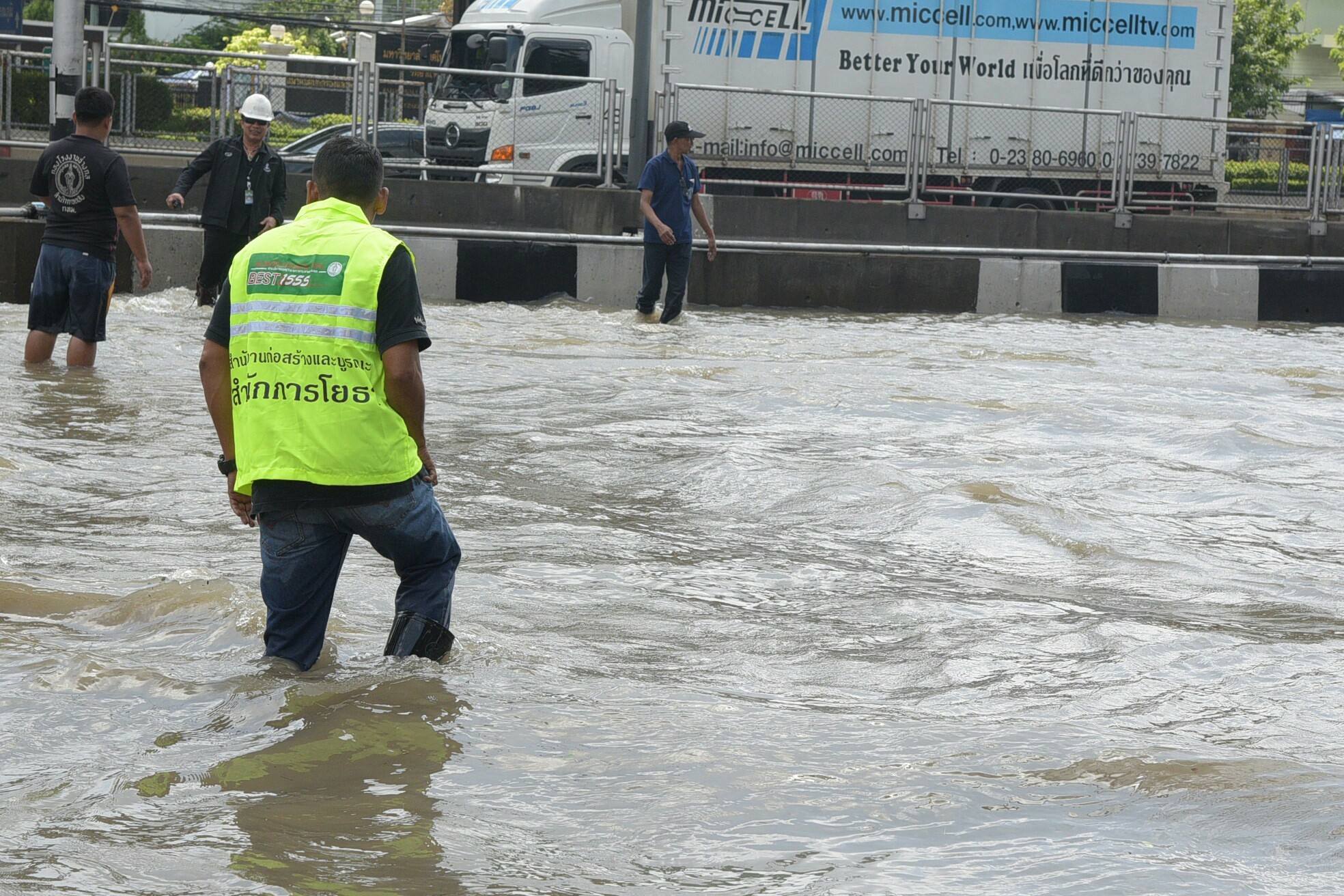 ด้าน นายจักรพันธ์ ผิวงาม รองผู้ว่าฯ กทม. ลงพื้นที่ดูสถานการณ์น้ำท่วมบริเวณถนนวิภาวดีรังสิตขาออก หน้า ร.1 รอ. กล่าวว่า จากสภานการณ์ที่เมื่อคืนมีฝนตกหนัก วัดปริมาณมากถึง 203 มิลลิเมตร และตกหนักต่อเนื่องและหนักสุดในรอบปี ขณะที่ฝนลงมาทำให้น้ำในคลองสายต่างๆใน กทม.อยู่ในระดับวิกฤต ประกอบน้ำเหนือที่ไหลมาสมทบในแม่น้ำเจ้าพระยาเพิ่มสูงขึ้น ทำให้จึงทำให้การระบายน้ำเป็นไปได้ช้า