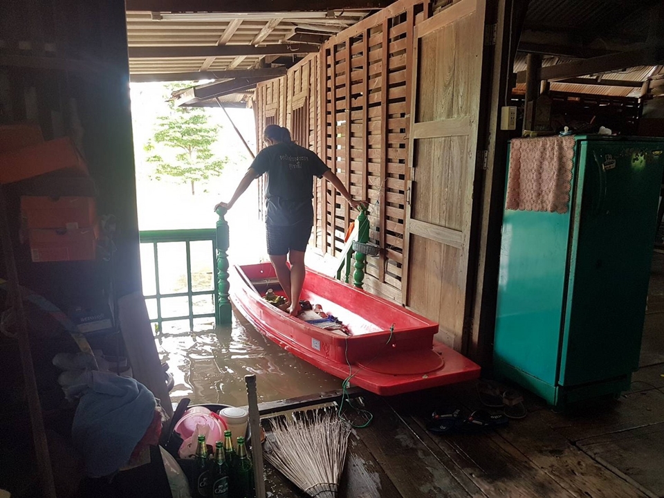 ส่วนนางศิริพร หอมบุบผา อายุ 59 ปี ชาวบ้านอีกคนหนึ่งที่บ้านถูกน้ำท่วมขึ้นไปถึงบนบ้านเช่นกัน กล่าวว่า บ้านของตนแม้จะเป็นบ้านทรงไทยที่มีใต้ถุนสูง แต่ก็ได้รับความเดือดร้อนเหมือนกัน เนื่องจากตอนนี้น้ำขึ้นมาท่วมถึงพื้นบ้านชั้นบนแล้ว ต้องขนของออกไปไว้ข้างนอก แต่ไม่ใช่เฉพาะบ้านของตนที่ประสบปัญหา ในหมู่บ้านนี้บ้านหลายหลังก็ประสบปัญหาเหมือนบ้านตนทั้งนั้น และยังไม่รู้ว่าน้ำจะท่วมมากเหมือนปี 2554 หรือเปล่า.-สำนักข่าวไทย