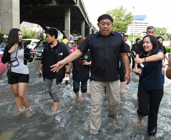 พล.ต.อ.อัศวิน ขวัญเมือง ผู้ว่าราชการกรุงเทพมหานคร(กทม.) ลงพื้นที่ตรวจจุดน้ำเร่งระบายบริเวณหน้าปั๊ม ปตท. วิภาวดี และหน้าอาคารการบินไทย สำนักงานใหญ่ ถ.วิภาวดี ซึ่งเกิดน้ำท่วมขังเนื่องจากมีฝนตกหนักตั้งแต่เวลาประมาณ 23.00 น. (13 ต.ค.) ต่อเนื่องจนถึงเวลา 06.00 น. ของเช้าวันนี้ (14 ต.ค.)