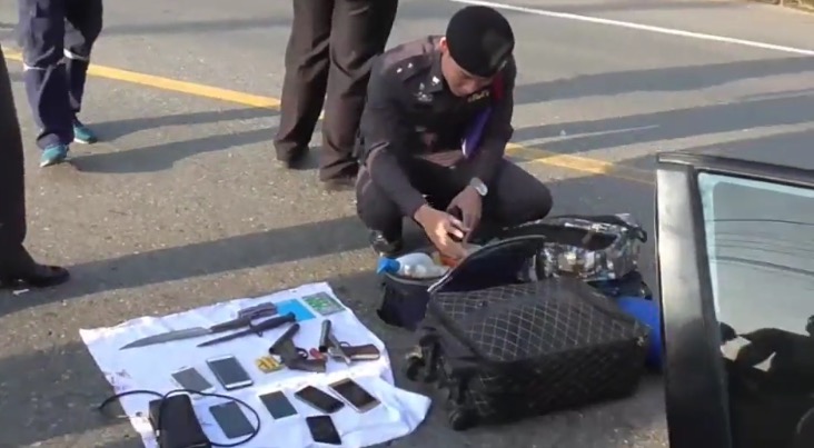 เมื่อเวลา 07.30 น. (15 ต.ค.) ร.ต.ท.มรรคพล จิณวุฒิ รองสารวัตร (สอบสวน) สถานีตำรวจภูธรเมืองฉะเชิงเทรา รับแจ้งอุบัติเหตุรถยนต์นั่งส่วนบุคคล สีน้ำเงินเข้ม ทะเบียน กต.2850 จันทบุรี เสียหลักชนอย่างแรงกับราวสะพานข้ามคลองบางขวัญ หลัก กม.ที่ 9+884 หมู่ 7 ต.บางขวัญ อ.เมือง จ.ฉะเชิงเทรา จึงประสานกู้ภัยเข้าช่วยเหลือผู้บาดเจ็บสาหัส 2 ราย เป็นชายอายุ 27 ปี หญิงอายุ 19 ปี ติดอยู่ในซากรถและถูกนำส่งโรงพยาบาลพุทธโสธร ส่วนสาเหตุเจ้าหน้าที่สันนิษฐานคนขับหลับใน นอกจากนี้ การตรวจค้นในรถพบอาวุธปืนลูกซองสั้นไทยประดิษฐ์ 2 กระบอก ไม่มีทะเบียน พร้อมกระสุนปืนลูกซอง อาวุธมีด โทรศัพท์มือถือ 7 เครื่อง และสมุดบัญชีธนาคารหลายเล่ม รวมทั้งพาสปอร์ตของชาวต่างด้าว เบื้องต้นเจ้าหน้าที่ได้อายัดตัวทั้งสองไว้ก่อนเพื่อสอบปากคำก่อนดำเนินการตามกฎหมาย.-สำนักข่าวไทย