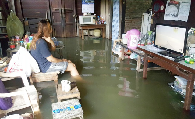 ชุมชนสันติชนสงเคราะห์เขตบางกอกน้อย มีบางช่วงที่ยังสร้างคันกั้นน้ำไม่เสร็จ ทำให้เช้านี้น้ำทะเลหนุนสูงเข้าท่วมบ้านเรือน โดยเฉพาะบริเวณชั้น 1 ของบ้าน ต้องอพยพข้าวของขึ้นที่สูง และชั้น 2 ของบ้าน และย้ายขึ้นไปนอนชั้นบน ซึ่งวันนี้น้ำขึ้นสูงสุด 1.90 เมตร ระดับน้ำทะเลปานกลาง บ้านนอกคันกั้นน้ำอีกหลายชุมชนริมเจ้าพระยามีน้ำเอ่อท่วม