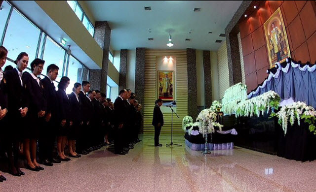สำนักงานศาลรัฐธรรมนูญ 19 ต.ค.- ประธานศาล รธน.นำ คณะตุลาการ เจ้าหน้าที่ และพนักงานศาลรัฐธรรมนูญ แสดงความอาลัยพระบาทสมเด็จพระปรมินทรมหาภูมิพลอดุลยเดช