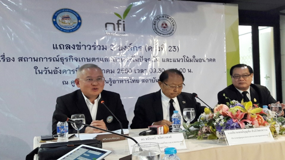 สภาอุตสาหกรรมแห่งประเทศไทย สภาหอการค้าแห่งประเทศไทย และสถาบันอาหาร แถลงสถานการณ์ธุรกิจเกษตรและอาหารของไทยปี 2560 และแนวโน้มปี 2561 นายยงวุฒิ เสาวพฤกษ์ ผู้อำนวยการสถาบันอาหาร กล่าวว่า ภาพรวมการส่งออกอาหารไทยปี 2560 คาดว่าจะมีมูลค่าการส่งออก 1.03 ล้านล้านบาท ขยายตัวเพิ่มขึ้นร้อยละ 8.4 ประเมินว่าอุตสาหกรรมอาหารไทยไตรมาสสุดท้ายปี 2560 จะยังได้รับปัจจัยสนับสนุนต่อเนื่องจากแนวโน้มการขยายตัวของเศรษฐกิจโลก ต้นทุนการผลิตที่ยังอยู่ในระดับต่ำ ปริมาณผลผลิตสินค้าเกษตรในประเทศที่เพิ่มสูงขึ้น รวมทั้งการส่งออกไก่ยังได้รับอานิสงส์จากกรณีการระบาดของโรคไข้หวัดนกในภูมิภาคเอเชียตะวันออก และปัญหาความเชื่อมั่นด้านความปลอดภัยเนื้อสัตว์ของบราซิล ประกอบกับความต้องการสินค้าอาหารที่มีแนวโน้มเพิ่มขึ้น เพื่อรองรับเทศกาลเฉลิมฉลองช่วงปลายปี จะมีส่วนกระตุ้นให้การส่งออกอาหารไทยในช่วงไตรมาสสุดท้ายของปีขยายตัวต่อเนื่อง