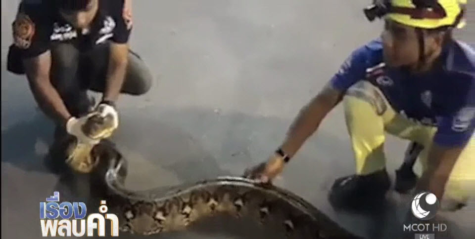 นครศรีธรรมราช 17 ต.ค.-งูเหลือมยักษ์ยาว 5 เมตร บุกบ้านเจ้าของบ้านผวา แจ้งมูลนิธิฯ ไปช่วยเหลือปล่อยคืนสู่ธรรมชาติ