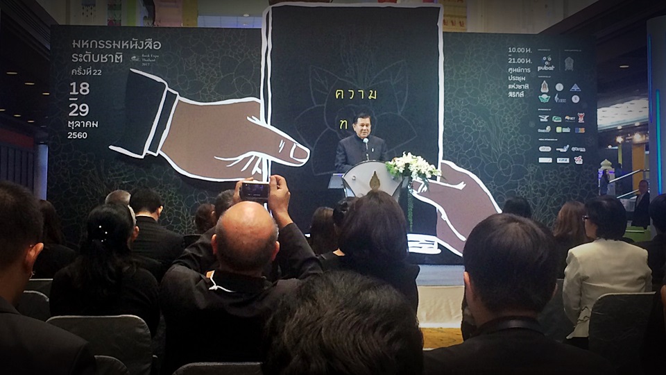 พล.อ.ธนะศักดิ์ ปฏิมาประกร รองนายกรัฐมนตรี เป็นประธานเปิดงานมหกรรมหนังสือระดับชาติครั้งที่ 22 ที่สมาคมผู้จัดพิมพ์เเละผู้จำหน่ายหนังสือเเห่งประเทศไทยจัดขึ้นภายใต้เเนวคิด “ความท๙งจำ”เพื่อน้อมรำลึกถึงพระมหากรุณาธิคุณเเละพระราชกรณียกิจของพระบาทสมเด็จพระปรมินทรมหาภูมิพลอดุลยเดช ที่มีต่อวงการหนังสือของไทย ผ่านหนังสือพระราชนิพนธ์และหนังสืออื่นๆที่เกิดขึ้นในรัชสมัยของพระองค์ด้วยความตระหนักว่า “หนังสือเป็นสิ่งที่จะทำให้มนุษย์ก้าวหน้าได้โดยแท้” สมดังพระบรมราโชวาทที่ได้พระราชทานแก่คณะสมาชิกห้องสมุดทั่วประเทศเมื่อวันที่ 25 พฤศจิกายน 2514 ว่า “หนังสือเป็นการสะสมความรู้และทุกสิ่งทุกอย่างที่มนุษย์ได้สร้างมาทำมาคิดมาแต่โบราณกาลจนทุกวันนี้ หนังสือจึงเป็นสิ่งสำคัญเป็นคล้าย ๆ ธนาคารความรู้และเป็นออมสินเป็นสิ่งที่จะทำให้มนุษย์ก้าวหน้าได้โดยแท้”