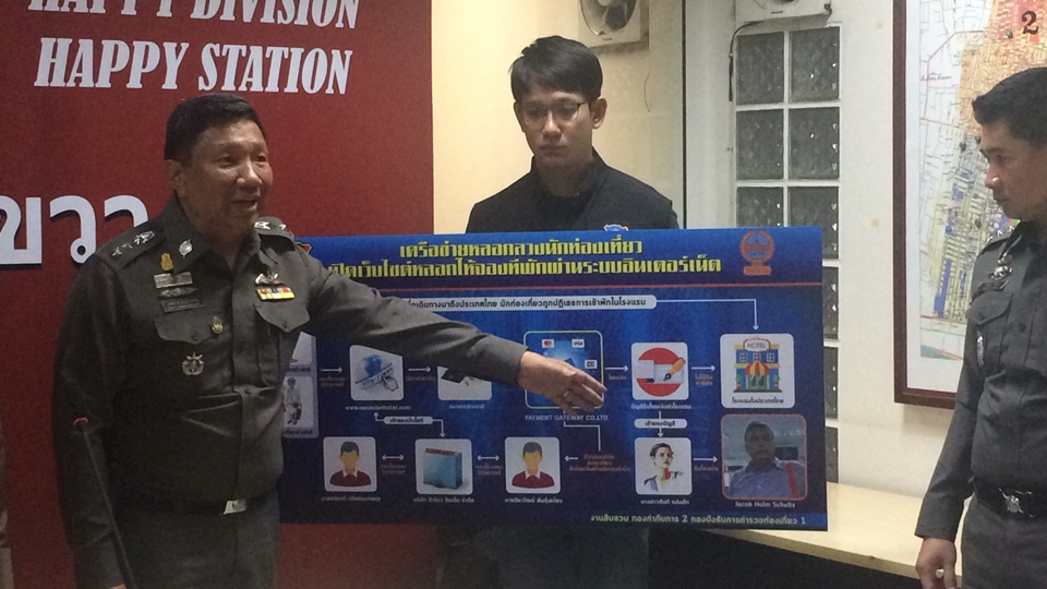 กรุงเทพฯ 18 ต.ค.- ตำรวจรวบหนุ่มเดนมาร์ก เปิดเว็บไซต์หลอกนักท่องเที่ยวจองที่พักในไทย เมื่อเดินทางมาถึงถูกลอยแพ ทำให้เสื่อมเสียภาพลักษณ์การท่องเที่ยวของไทย สร้างความเสียหายมาแล้วกว่า 20 ล้านในช่วง 2 ปี