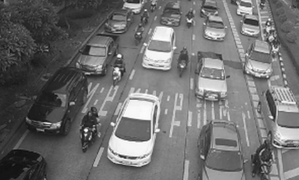 การจราจร ถนนพหลโยธิน ขาเข้า จากแยกรัชโยธิน มุ่งหน้าแยกลาดพร้าว รถมาก เคลื่อนตัวได้ช้า