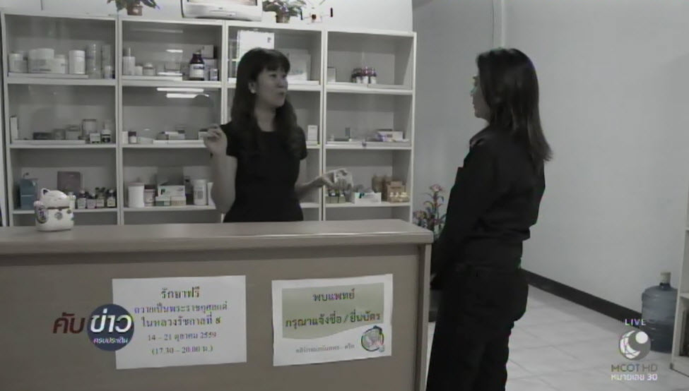 ป้ายที่พิมพ์บนกระดาษ A4 ที่พิมพ์ว่า “คลินิกแพทย์หญิงนันทพร-นายแพทย์ดริสให้บริการตรวจรักษาผู้ป่วย โดยไม่คิดค่าใช้จ่าย ตั้งแต่วันที่ 14- 21ตุลาคม พ.ศ.2559 เพื่อถวายเป็นพระราชกุศลแด่พระบาทสมเด็จพระปรมินทรมหาภูมิพลอดุลยเดช “ติดไว้ด้านหน้าคลินิกแพทย์หญิงนันทพร-นายแพทย์ดริส ถนนเหล่าดี ใกล้โรงงานแหอวน ติดกับหมู่บ้านฉัตรเพชร ต.ในเมือง อ.เมือง จ.ขอนแก่น เพื่อประกาศให้กับประชาชนรับทราบ และเดินทางเข้ามารับการรักษาฟรี พร้อมกันนี้ยังได้ประกาศผ่านเฟซบุ๊ก ซึ่งที่ผ่านมามีประชาชนมาใช้บริการเพิ่มขึ้นอย่างต่อเนื่อง