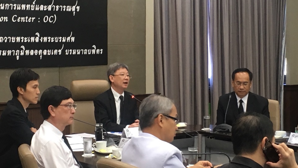 นพ.โอภาส การย์กวินพงศ์ รองปลัดกระทรวงสาธารณสุข (สธ.) กล่าวภายหลังการประชุมศูนย์ปฏิบัติการด้านการแพทย์และสาธารณสุข (Operation Center : OC) สำหรับงานพระราชพิธีถวายพระเพลิงพระบรมศพ พระบาทสมเด็จพระปรมินทรมหาภูมิพลอดุลยเดช ร่วมกับนายแพทย์สาธารณสุขจังหวัดทั่วประเทศ ว่า ในส่วนของกระทรวงสาธารณสุข รับผิดชอบการดูแลประชาชน ในรอบนอกตามจังหวัดต่างๆที่มีพระเมรุมาศจำลอง , ในพื้นที่ปริมณฑล รับผิดชอบดูแล ที่สถาบันเทคโนโลยีพระจอมเกล้าเจ้าคุณทหารลาดกระบัง และพุทธมณฑล ซึ่งมีการซักซ้อมเตรียมความพร้อม ทั้งการรองรับประชาชน และดูแลด้านการเจ็บป่วยร้อยเปอร์เซ็นต์