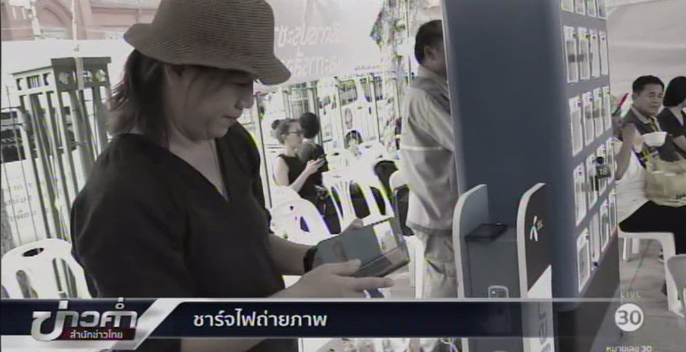 กทม. 18 ต.ค. – บริเวณท้องสนามหลวง ไม่ได้มีเพียงจุดให้บริการน้ำดื่มและอาหารจากจิตอาสาเท่านั้น แต่ยังมีจุดชาร์จแบตโทรศัพท์เคลื่อนที่เพื่อประชาชนบริเวณท้องสนามหลวง และพระบรมมหาราชวัง ที่มาสักการะพระบรมศพ พระบาทสมเด็จพระปรมินทรมหาภูมิพลอดุลยเดช ได้เก็บภาพความประทับใจบันทึกไว้ในความทรงจำ. – สำนักข่าวไทย