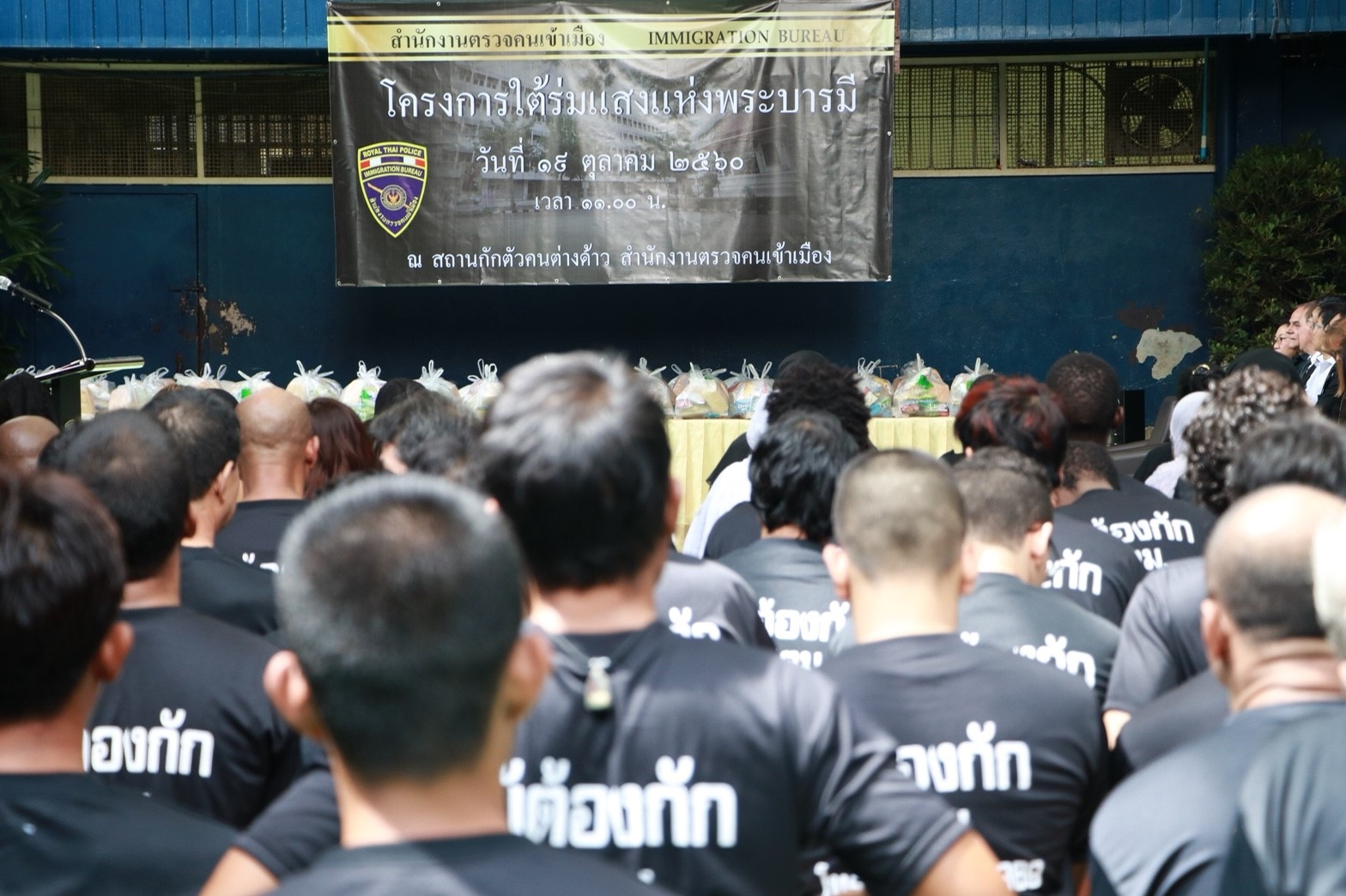 พลตำรวจโทสุทธิพงษ์ วงษ์ปิ่น รักษาราชการแทนผู้บัญชาการสำนักงานตรวจคนเข้าเมือง พร้อมผู้แทนจากสถานเอกอัครราชทูต จำนวน 10 ประเทศ จัดเลี้ยงอาหารแก่ผู้ต้องกักเพื่อรอการส่งกลับ จำนวน 619 คน เพื่อถวายเป็นพระราชกุศลแด่พระบาทสมเด็จพระปรมินทรมหาภูมิพลอดุลยเดช บรมนาถบพิตร พร้อมจัดอาหารเสริมและอุปกรณ์ต่างๆ ที่เหมาะสมให้แก่ผู้ได้รับสถานะผู้ลี้ภัยและผู้แสวงหาที่พักพิง ซึ่งเป็นเด็กอายุระหว่าง 3 ถึง 12 ปี จำนวน 20 คนโดยเป็นความร่วมมือระหว่าง สำนักงานตรวจคนเข้าเมือง และองค์กรระหว่างประเทศเพื่อการโยกย้ายถิ่นฐาน