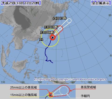 สถานเอกอัครราชทูตไทย ณ กรุงโตเกียวโพสต์ข้อความผ่านทาง Facebook โดยระบุว่าสำนักอุตุนิยมวิทยาของญี่ปุ่น รายงานว่า พายุไต้ฝุ่นลัง (Lan) ซึ่งมีขนาดใหญ่และรุนแรงเทียบเท่าพายุไซโคลนระดับ 4 โดยมีความเร็วลมสูงสุด 300 กิโลเมตรต่อชั่วโมง จะพัดขึ้นฝั่งทางตะวันออกเกาะโอกินาวา ผ่านเกียวโต โกเบ และคาดว่าในวันพรุ่งนี้ (23 ต.ค.) เวลาประมาณ 06.00 น. จะพัดถล่มกรุงโตเกียว อาจเกิดน้ำท่วมฉับพลันและดินถล่มในพื้นที่โดยรอบ