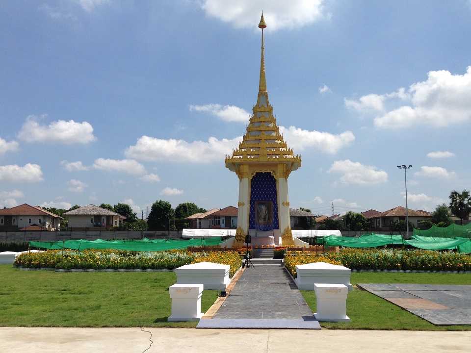 เมื่อเวลา 11.00 น. (23 ต.ค.) พล.อ.อนุพงษ์ เผ่าจินดา รัฐมนตรีว่าการกระทรวงมหาดไทย ตรวจสอบความเรียบร้อยการก่อสร้างพระเมรุมาศจำลองและพระจิตกาธาน ที่วัดบัวขวัญ พระอารามหลวง อ.เมือง จ.นนทบุรี ซึ่งจัดสร้างเสร็จสมบูรณ์แล้ว เพื่อใช้ในงานพระราชพิธีถวายพระเพลิงพระบรมศพพระบาทสมเด็จพระปรมินทรมหาภูมิพลอดุลยเดช บรมนาถบพิตร (รัชกาลที่ 9) ขณะที่จิตอาสากว่า 1,000 คน ช่วยกันทำความสะอาดและปรับภูมิทัศน์รอบบริเวณลานพระเมรุมาศจำลอง พร้อมประดับต้นดาวเรืองที่ผลิดอกเหลืองอร่ามให้เกิดความสวยงามสมพระเกียรติ
