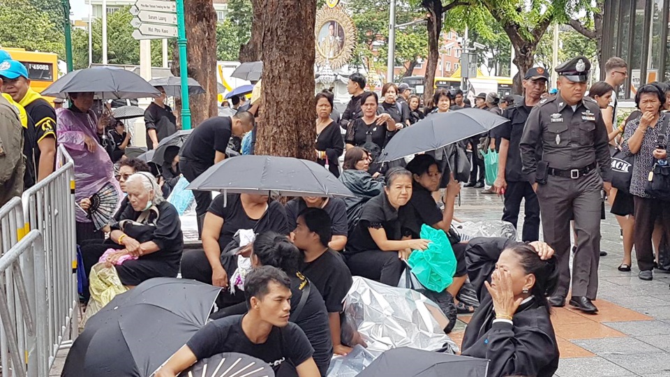 ประชาชนที่เดินทางมา เช่น ชาวปทุมธานี กล่าวว่า มาพร้อมครอบครัวด้วยความตั้งใจต้องการเข้าร่วมงานพระราชพิธีถวายพระเพลิงพระบรมศพฯ เป็นครั้งสุดท้าย แม้ฝนตกก็ไม่เป็นอุปสรรค เพราะไม่เทียบเท่าพระราชกรณียกิจที่พระองค์ทรงทำมาถึง 70 ปีแห่งการครองราชย์