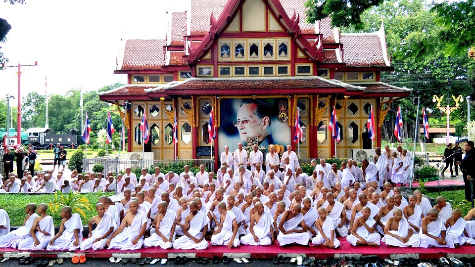 ส่วนสถานีรถไฟหัวหิน จัดพิธีอุปสมบทหมู่ 89 รูป เพื่อถวายเป็นพระราชกุศล ขณะเดียวกันพลเรือตรีเชษฐา ใจเปี่ยม รองเจ้ากรมกิจการพลเรือน กองทัพเรือ เข้ากราบสักการะพระบรมสาทิสลักษณ์พระบาทสมเด็จพระปรมินทรมหาภูมิพลอดุลยเดช บรมนาถบพิตร ณ พลับพลารับเสด็จฯ หน้าสถานีรถไฟหัวหิน ก่อนเป็นประธานโครงการฝ่ายฆราวาสในพิธีบรรพชา ณ วัดบุษยะบรรพต.-สำนักข่าวไทย