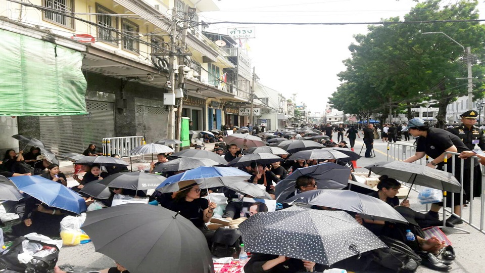 แพทย์หญิงคนหนึ่งมารอตั้งแต่ 02.00 น.ที่บริเวณหน้าจุดพระแม่ธรณี จนย้ายข้ามมาอยู่ข้างกระทรวงมหาดไทย แม้จะนั่ง ยืน เดินระยะทางยาวไกลแค่ไหน ก็ยอม ขณะเดียวกันเมื่อวานนี้ตนพร้อมเพื่อนๆโรงพยาบาลจากอุบลราชธานี ก่อนมาที่จุดสนามหลวงวันนี้ ได้ไปที่โรงพยาบาลศิริราช และเข้ากราบพระบรมฉายาลักษณ์ในหลวงรัชกาลที่9 หน้าพระบรมมหาราชวัง เสมือนได้กราบลาพระองค์เป็นครั้งสุดท้าย