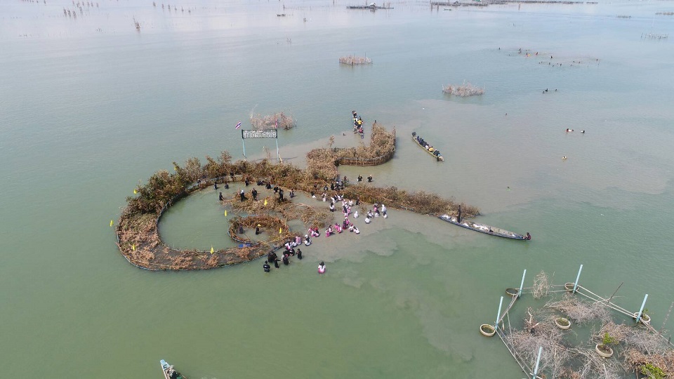 สงขลา 25 ต.ค.- กลุ่มชาวประมงสิงหนคร ร่วมกันทำกิจกรรมสร้างบ้านปลากลางทะเลสาบสงขลาเป็นสัญลักษณ์เลข “๙” ด้วยความซาบซึ้งในพระมหากรุณาธิคุณเป็นล้นพ้น ตามแนวพระราชปณิธานของความยั่งยืน
