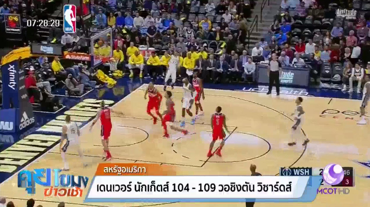 วอชิงตัน วิซาร์ดส์ เก็บชัยชนะ 3 นัดติดต่อกัน รั้งจ่าฝูงของเซาธ์อีสต์ ดิวิชั่น ขณะที่ เดนเวอร์ นักเก็ตส์ รั้งอันดับ 4 นอร์ธเวสต์ ดิวิชั่น ผลงาน ชนะ 1 นัด แพ้ 2 นัด.-สำนักข่าวไทย