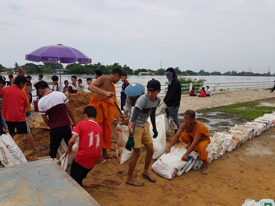 พระครูวิบูล พัฒนมงคล เจ้าอาวาสวัด กล่าวว่า น้ำขึ้นเร็วมากและฝนตกหนักมาหลายวัน อาจเกิดปัญหาน้ำท่วมสูงเหมือน 6 ปีที่ผ่านมา ซึ่งครั้งนั้นน้ำสูงถึง 2 เมตร มาปีนี้ต้องจับตาดูตลอดเวลา เพราะแม่น้ำเจ้าพระยาเหลือไม่ถึง 10 เซนติเมตร จะเข้าท่วมวัดแล้ว และได้ประสานไปยังองค์กรปกครองส่วนท้องถิ่น เพื่อขอความช่วยเหลือจัดหาทรายและกระสอบ อย่างน้อยหากน้ำล้นตลิ่งก็สามารถชะลอน้ำไว้ได้ระดับหนึ่ง
