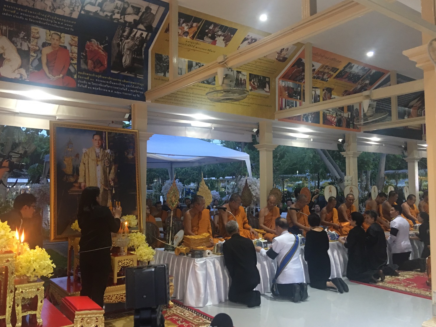 ขณะที่บริเวณวัดจัดเตรียมสถานที่เพื่อให้ประชาชนถวายดอกไม้จันทน์ ในวันพระราชพิธีถวายพระเพลิงพระบรมศพ พระบาทสมเด็จพระปรมินทรมหาภูมิพลอดุลยเดช บรมนาถบพิตร ในวันที่ 26 ตุลาคมนี้ ตั้งแต่เวลา 09.00-15.30 น. จากนั้นจึงเริ่มพิธีถวายดอกไม้จันทน์ ซึ่งมีจิตอาสาร่วมกันจัดดอกไม้อย่างงดงามทั่วบริเวณวัด อาทิ ดอกกล้วยไม้ ดอกดารารัตน์ เพื่อเป็นส่วนหนึ่งให้ประชาชนชาวไทยร่วมแสดงความอาลัย นอกจากนี้ยังมีการจัดนิทรรศการแสดงพระปรีชาด้านการเป็นนักพัฒนา และหลังพิธีถวายดอกไม้จันทน์แล้ว จะมีการแสดงพระธรรมเทศนา สวดพุทธมนต์ น้อมเกล้าน้อมกระหม่อม ถวายเป็นพระราชกุศลแด่ พระบาทสมเด็จพระปรมินทรมหาภูมิพลอดุลยเดช