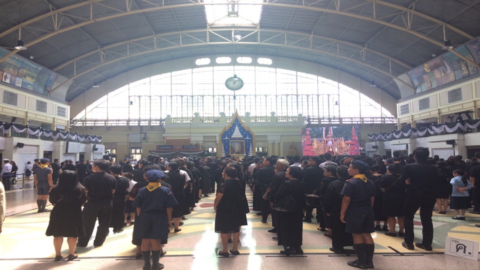ผู้สื่อข่าวรายงานบรรยากาศภายในสถานีรถไฟหัวลำโพง มีประชาชนเดินทางเข้ามาอย่างต่อเนื่อง โดยประชาชนบางส่วนที่เดินทางมาเข้าร่วมพระราชพิธีถวายพระเพลิงพระบรมศพ พระบาทสมเด็จพระปรมินทรมหาภูมิพลอดุลยเดช เลือกที่จะลงสถานียมราช เนื่องจากเป็นจุดใหญ่ในการเดินทางเข้าไปยังท้องสนามหลวงสะดวกในการเดินทางมากกว่า คาดว่าวันนี้ (26 ต.ค.) จะมีผู้โดยสารเดินทางถึง 109,638 คน มีการเดินรถ 262 เที่ยว ซึ่งการรถไฟแห่งประเทศไทย (รฟท.) เตรียมความพร้อมในการดูแลความปลอดภัยอย่างเข้มงวด ทั้งตำรวจในและนอกเครื่องแบบจัดสุนัขตรวจค้นวัตถุต้องสงสัย หน่วยแพทย์เคลื่อนที่เพื่อคอยอำนวยความสะดวกด้วย