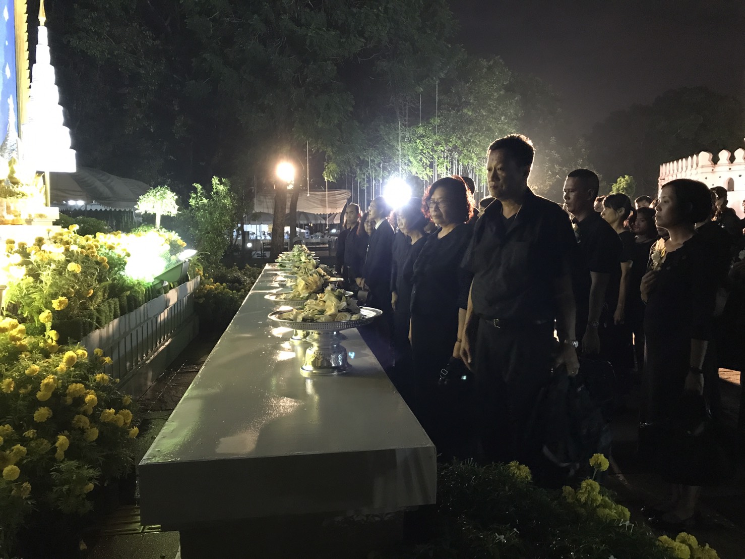 หลังจากมีการเปิดให้เข้าถวายดอกไม้จันทน์อีกครั้งในเวลา 18.30 น. ประชาชนจำนวนมากหลั่งไหลเข้ามาวางดอกไม้จันทน์ตามจุดต่างๆ ที่มีการจัดพื้นที่รองรับไว้ เช่นเดียวกับที่สวนสันติชัยปราการ ประชาชนแต่งกายด้วยชุดสุภาพสีดำเข้าวางดอกไม้จันทน์ ซึ่งจะมีไปจนถึงเวลา 22:00 น. จะมีพระราชพิธีถวายพระเพลิงพระบรมศพพระบาทสมเด็จพระปรมินทรมหาภูมิพลอดุลยเดช ขณะที่ยังมีประชาชนบางส่วนหลังถวายดอกไม้จันทน์แล้วยังคงปักหลักชมการถ่ายทอดพระราชพิธีที่ถ่ายทอดผ่านจอโปรเจกเตอร์ขนาดใหญ่ที่ทางเจ้าหน้าที่จัดเตรียมไว้ภายในบริเวณสวนแห่งนี้.-สำนักข่าวไทย