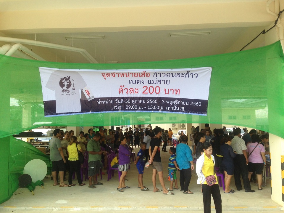 ประจวบคีรีขันธ์ 30 ต.ค.- เสื้อยืด รพ.บางสะพาน หารายได้สมทบทุนวิ่งการกุศลก้าวคนละก้าว “ตูน บอดี้สแลม” เบตง-แม่สาย เปิดจำหน่ายวันแรกยอดถล่มทลาย แค่ 2 ชั่วโมงหมดเกลี้ยง