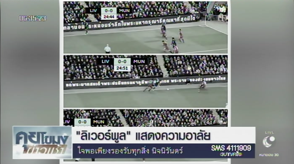 อังกฤษ 18 ต.ค.- ทีมงานหงส์แดง ขึ้นข้อความตรงป้ายโฆษณาข้างสนามแสดงความอาลัยพระบาทสมเด็จพระปรมินทรมหาภูมิพลอดุลยเดช ในฟุตบอลพรีเมียร์ลีกนัดมันเดย์ไนท์ เสมอ แมนฯ ยูไนเต็ด