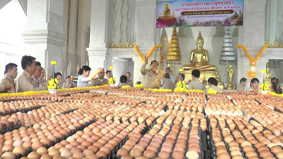 ฉะเชิงเทรา 31 ต.ค.- ผู้ว่าฯ แปดริ้วทำพิธีบวงสรวงไข่ไก่ 109,999 ฟอง พร้อมขบวนแห่นมัสการหลวงพ่อโสธรให้ประชาชนสักการะรอบเมือง ร่วมถวายเป็นพระราชกุศลในหลวงรัชกาลที่ 9