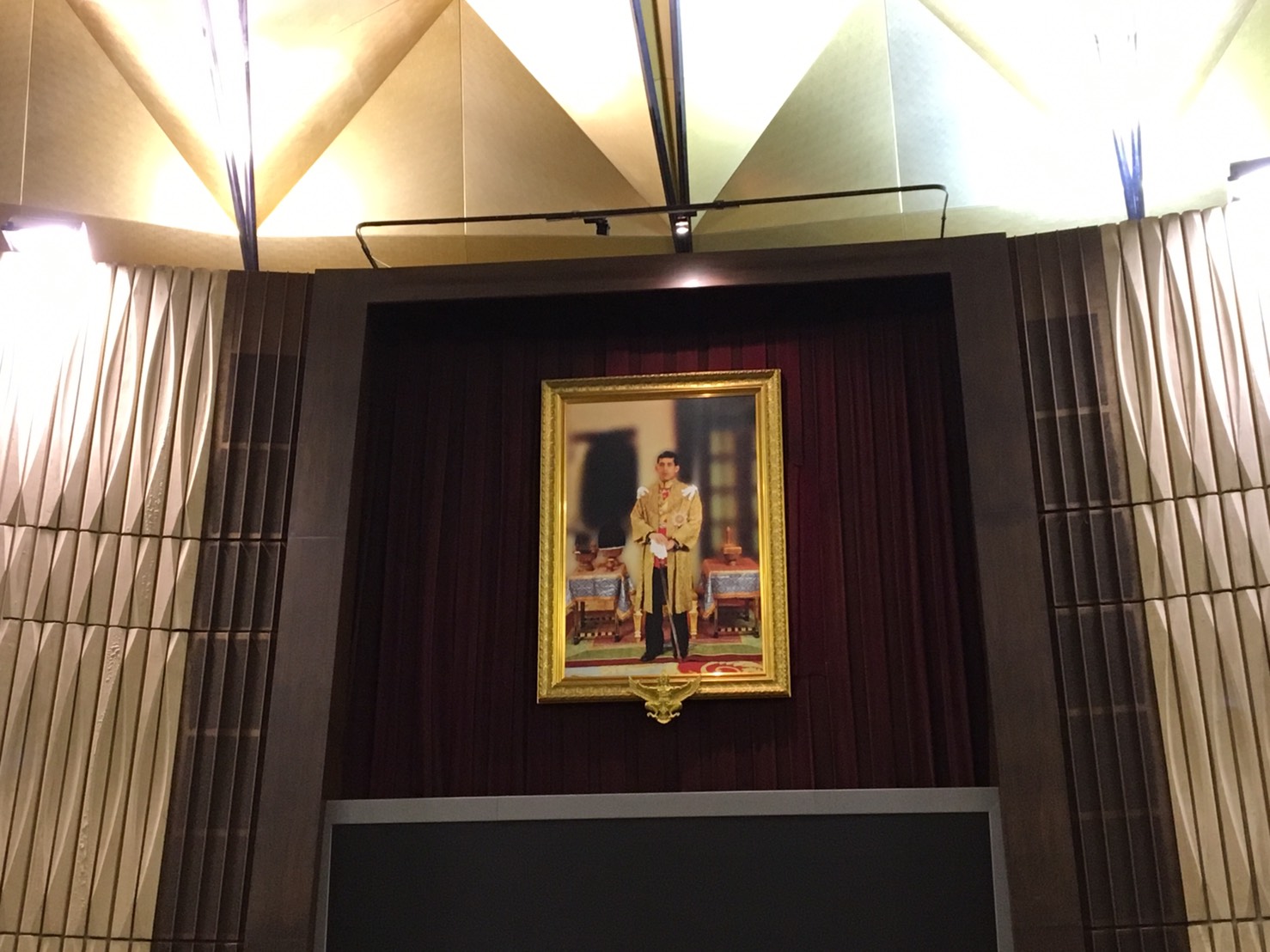 อย่างไรก็ตามพระบรมสาทิสลักษณ์พระบาทสมเด็จพระปรมินทรมหาภูมิพลอดุลยเดช บรมนาถบพิตรประดิษฐานเหนือบัลลังก์ห้องประชุมรัฐสภา มาตั้งแต่ปี 2517 รวมเวลาประมาณ 43 ปี โดยจะเชิญไปเก็บไว้ในพิพิธภัณฑ์รัฐสภา และหากย้ายไปรัฐสภาแห่งใหม่ ก็จะนำไปเก็บไว้ในพิพิธภัณฑ์ใหม่ต่อไป.- สำนักข่าวไทย