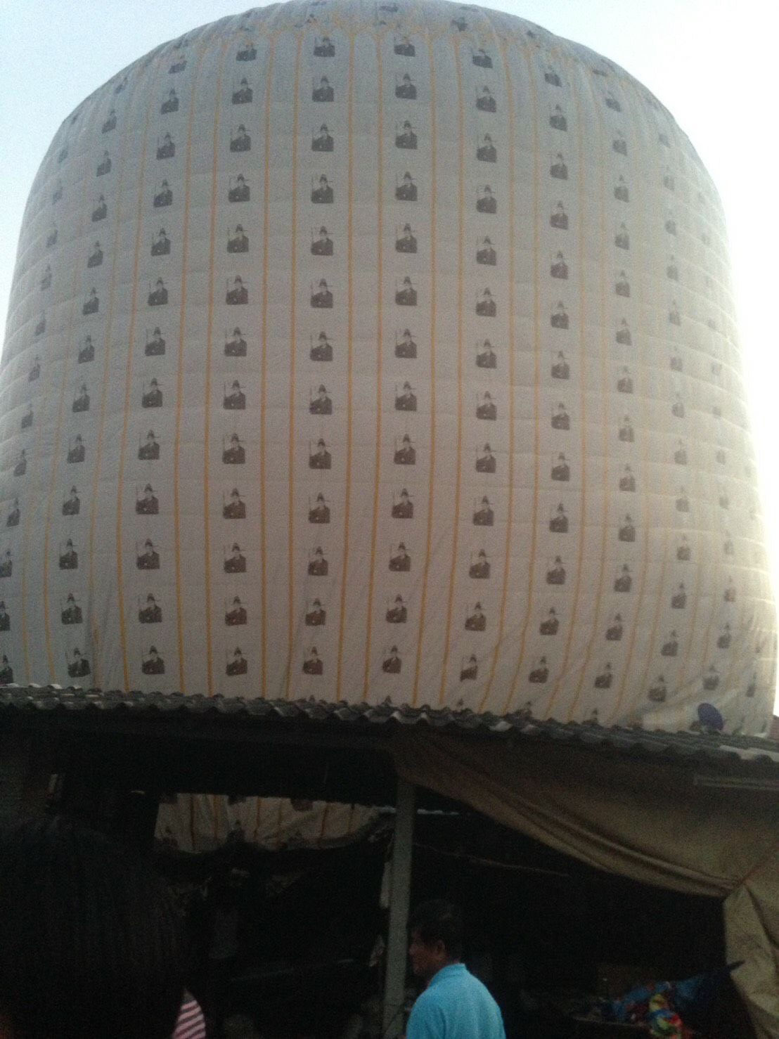 นายอิทธิพันธิ์ เล่าอีกว่า ฐานของโคมใช้ไม้ไผ่ทำเป็นวงกลม และเสริมด้วยเหล็กเส้นขนาด 1 เซนติเมตร ยาว 5 เมตร จำนวน 2 เส้น จึงทำให้ฐานของโคมลอยแข็งแรง และการใช้เชื้อเพลิงขนาดใหญ่ ทำให้โคมลอยมาไกล คาดว่ามาจากประเทศเมียนมาร์ เพราะใต้โคมลอยมีจดหมายผูกติดไว้บอกบุญ พร้อมซองใส่เงิน และผ้าห่มเกือบ 100 ผืน ผูกติดเชือกให้เป็นหางโคมลอยยาวกว่า 500 เมตร ขณะนี้ไม่รู้ว่าจะทำอย่างไร แต่ได้นำซากโคมลอยมากองไว้หลังบ้าน และยังไม่กล้าตัดสินใจโทรศัพท์ไปตามหมายเลขที่ระบุไว้ในจดหมาย
