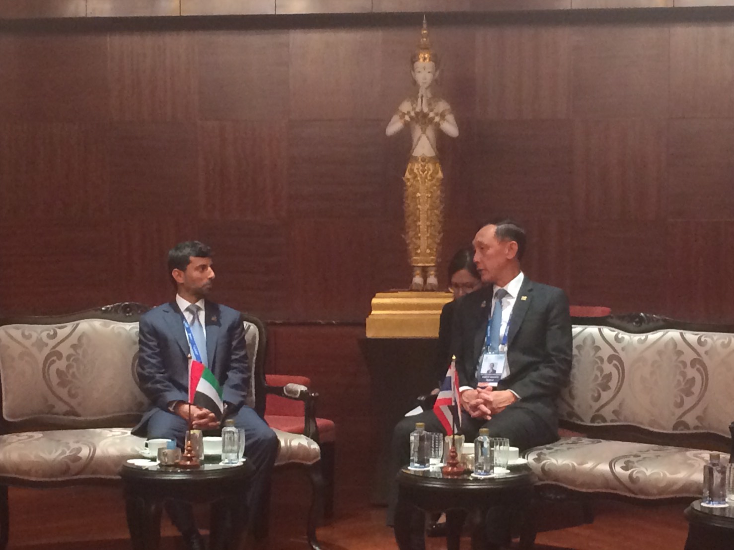 นายซูฮาอิล อัล มาซโรอี รัฐมนตรีกระทรวงพลังงาน สหรัฐอาหรับเอมิเรตส์ ( H.E. Suhail Al Mazrouei Minister of Energy ) กล่าว่า สนใจที่จะลงทุนในไทยทั้งในด้านธุรกิจปิโตรเลียมขั้นต้นและขั้นปลายอัพ โดยสนใจเข้าร่วมประมูลแหล่งบงกชเอราวัณ และมองหาโอกาสร่วมทุนในโรงกลั่น โดยประเทศไทยเป็นตลาดที่สำคัญมากมาก ยูเออีพร้อมพัฒนาความสัมพันธ์ด้านพลังงานไปสู่การเป็นหุ้นส่วนทางยุทธศาสตร์ และมีการหารือระหว่างบริษัทน้ำมันแห่งชาติของยูเออี และบมจ. ปตท.ที่จะส่งน้ำมันมาถึงในไทยมากขึ้น