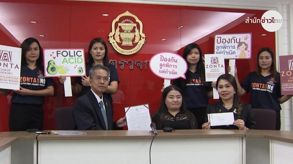 น.ส. สุจิตรา หมวดพล นายกสโมสรซอนต้า กรุงเทพ 1 และน.ส.มาลี แซ่หว้า หัวหน้างานศูนย์พิทักษ์สิทธิคนพิการ มูลนิธิพระมหาไถ่เพื่อการพัฒนาคนพิการ พร้อมผู้พิการแต่กำเนิดจำนวนหนึ่ง ยื่นคำร้องต่อผู้ตรวจการแผ่นดิน วันนี้ (2 ต.ค.) ผ่านนายรักษเกชา แฉ่ฉาย เลขาธิการผู้ตรวจการแผ่นดิน ขอให้ประสานไปยังคณะกรรมการอาหารและยา (อ.ย.) และหน่วยงานภาครัฐที่เกี่ยวข้อง ให้ทำการผลิตวิตามินโฟลิกแอซิด หรือ วิตามินบี 9 ขนาด 400 ไมโครกรัม ตามที่องค์การอนามัยโลก (WHO) แนะนำ เพื่อให้ผู้หญิงวัยเจริญพันธุ์ที่มีโอกาสตั้งครรภ์รับประทาน เพื่อลดอัตราการเกิดความพิการแต่กำเนิด