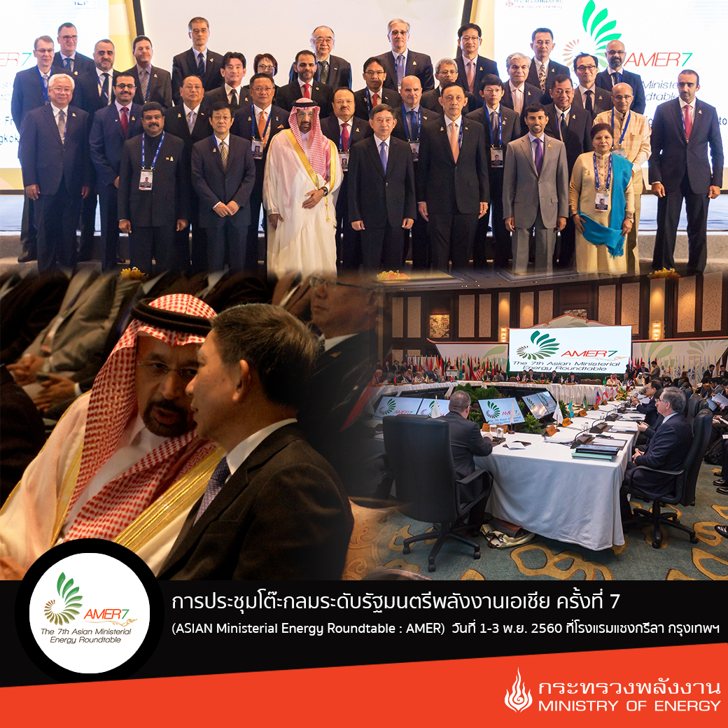 พลเอกอนันตพร กาญจนรัตน์ รัฐมนตรีว่าการกระทรวงพลังงาน ประเมินการจัดงานประชุมโต๊ะกลมระดับรัฐมนตรีพลังงานเอเชียครั้งที่ 7 หรือ AMER 7 ซึ่งประเทศไทยเป็นเจ้าภาพว่า งาน AMER 7 Global Energy Markets in Transition: From Vision to Action ประสบความสำเร็จ ทั้งด้านจำนวนผู้เข้าร่วมประชุมและเนื้อหาในการประชุม โดยผู้เข้าร่วมประชุมมีทั้งระดับรัฐมนตรีและผู้แทน จาก 24 ประเทศ ผู้นำองค์กร ระหว่างประเทศ อีก 21 องค์กร นับเป็นจำนวนผู้เข้าร่วมงานมากที่สุดตั้งแต่มีการจัดงาน ขึ้นมา สำหรับเนื้อหาในการประชุมมี 3 ด้านด้วยกันคือ ตลาดน้ำมันโลก ที่ขณะนี้ถึงยุคของการสร้างความสมดุล ระหว่างผู้ผลิตและผู้บริโภคน้ำมัน ตลาดก๊าซธรรมชาติซึ่งต่อไปจะเป็นยุคทองของก๊าซธรรมชาติแน่นนอน และ เรื่องของเทคโนโลยีที่จะเปลี่ยนแปลงไปอย่างก้าวกระโดด โดยเป็นเทคโนโลยีที่จะเข้ามาสร้างความมั่นคงของพลังงานทดแทน และมีเสถียรภาพมากขึ้น รวมทั้งเรื่องการประหยัดพลังงาน ทั้ง 3 หัวข้อที่ประชุมได้ข้อยุติ และสามารถนำไปใช้ได้ โดยหลายประเทศระบุว่า จะนำผลการประชุมครั้งนี้ไปเป็นนโยบายของประเทศ ส่วนเรื่องเทคโนโลยีที่เปลี่ยนแปลงไปอย่างก้าวกระโดดนั้นจะมีการหาทุนและนำไปสู่การนำไปใช้ต่อไป -สำนักข่าวไทย