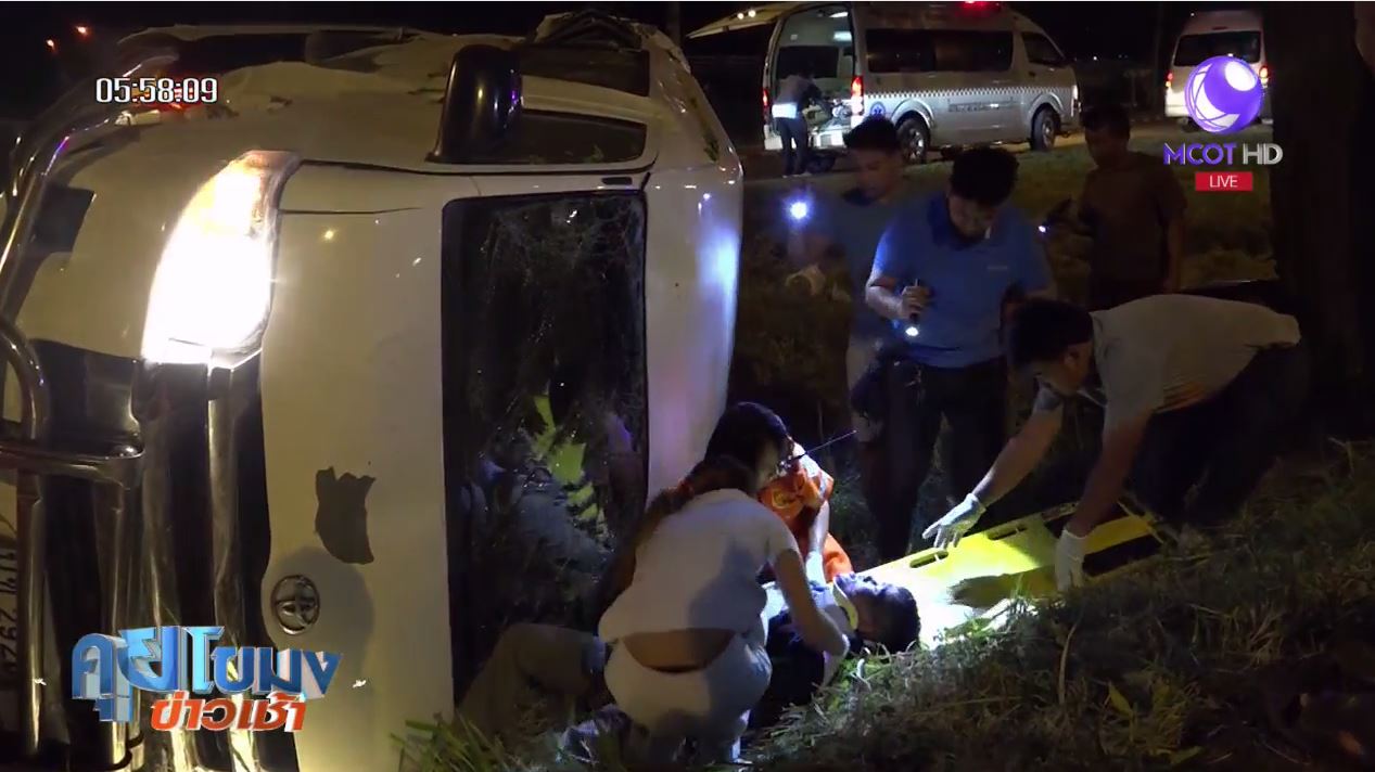นครราชสีมา 3 พ.ย. – รถตู้โดยสารเสียหลักชนต้นไม้พลิกคว่ำบาดเจ็บ 7 ราย คาดคนขับหลับใน