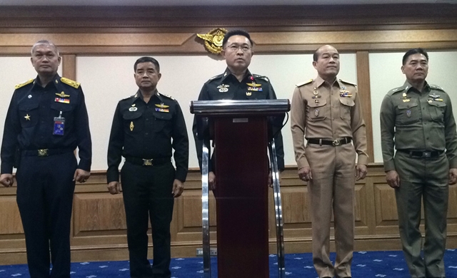 จากนั้น พล.อ.สุรพงษ์ ได้นำผู้บัญชาการเหล่าทัพ ผบ.ตร. แถลงข่าว โดยระบุว่า การประชุมในวันนี้ เรื่องสำคัญ คือ การสนับสนุนรัฐบาลในทุกพระราชพิธีอย่างเต็มกำลังความสามารถเพื่อให้สมพระเกียรติพระบาทสมเด็จพระปรมินทรมหาภูมิพลอดุลยเดช เหล่าทัพและสำนักงานตำรวจแห่งชาติพร้อมสืบสานพระราชปณิธาน และน้อมนำพระบรมราโชวาทมายึดถือปฏิบัติ พัฒนาประเทศให้เจริญก้าวหน้า และสนับสนุนคณะรักษาความสงบแห่งชาติ (คสช.) ในการรักษาความสงบ และอำนวยความสะดวกประชาชน เช่น การส่งกำลังพลดูแลความเรียบร้อยบริเวณโดยรอบพระบรมมหาราชวังเพิ่มเติม อีกทั้งกองทัพยังส่งเจ้าหน้าที่เข้าร่วมกับศูนย์บัญชาการติดตามสถานการณ์ (ศตส.) ของรัฐบาลด้วย โดยห้วงนี้ ภาพรวมประเทศอยู่ในความสงบเรียบร้อย แต่ยอมรับว่ามีกลุ่มเล็ก ๆ ที่มีความพยายามบิดเบือนและสร้างกระแสต่าง ๆ แต่ไม่ส่งผลกระทบต่อภาพรวมแต่อย่างใด