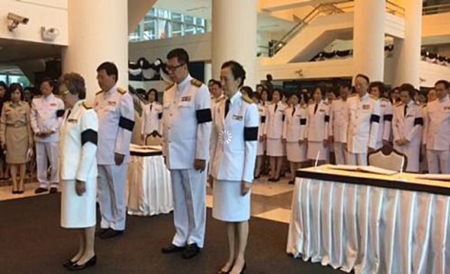 นนทบุรี 17 ต.ค. – นางอภิรดี ตันตราภรณ์ รัฐมนตรีว่าการกระทรวงพาณิชย์ นายสุวิทย์ เมษินทรีย์ รัฐมนตรีช่วยว่าการกระทรวงพาณิชย์ นางสาววิบูลย์ลักษณ์ ร่วมรักษ์ ปลัดกระทรวงพาณิชย์ ผู้บริหาร ข้าราชการ ลูกจ้าง กระทรวงพาณิชย์ ลงนามถวายความอาลัย พระบาทสมเด็จพระปรมินทรมหาภูมิพลอดุลยเดช บริเวณโถงชั้น 3 อาคารสำนักงานปลัดกระทรวงพาณิชย์ เพื่อให้ผู้บริหาร ข้าราชการ ลูกจ้าง กระทรวงพาณิชย์ ได้น้อมเกล้าน้อมกระหม่อมรำลึกในพระมหากรุณาธิคุณของพระบาทสมเด็จพระปรมินทรมหาภูมิพลอดุลยเดช ที่มีต่อพสกนิกรชาวไทย พร้อมกับยืนถวายความอาลัยเป็นเวลา 9 นาที.-สำนักข่าวไทย