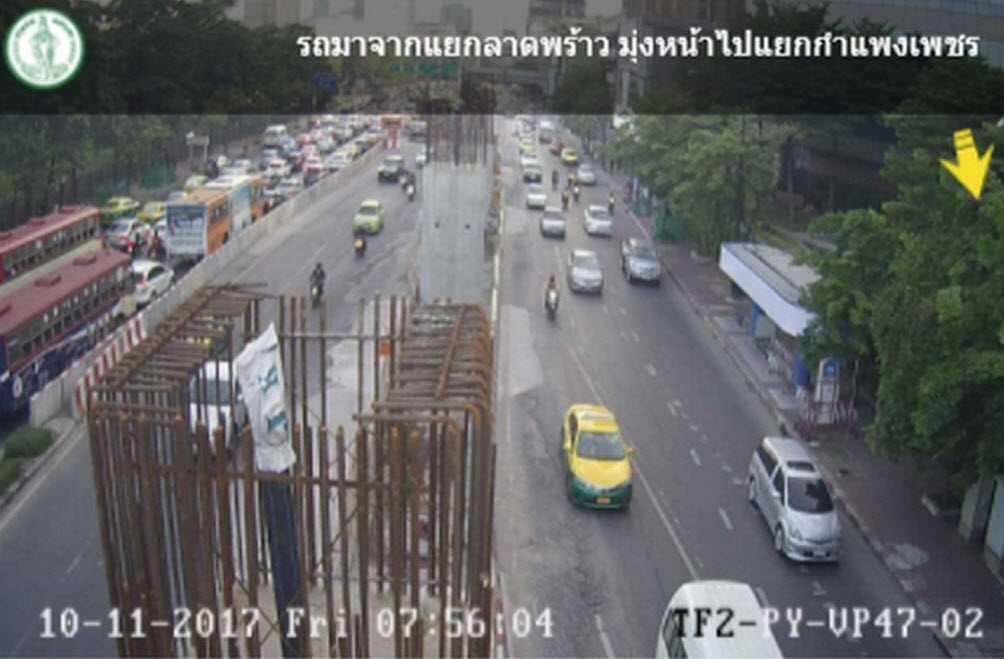 ถนนพหลโยธิน ขาออก มุ่งหน้าไปแยกลาดพร้าว รถหนาแน่น ท้ายสะสมอยู่หน้าสวนจตุจักร