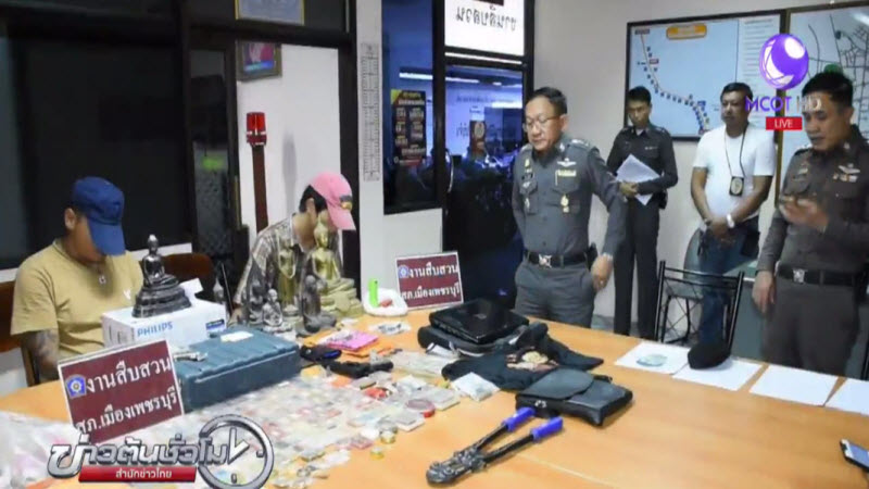 เพชรบุรี 10 พ.ย. – นายจีระพันธ์ ส่งแก้ว และนายดารัส จันทร์ฉาย ถูกตำรวจภูธรจังหวัดเพชรบุรี จับกุมข้อหาลักทรัพย์ พร้อมของกลางพระพุทธรูป พระเครื่อง สร้อยคอทองคำ คอมพิวเตอร์ และอุปกรณ์งัดแงะ หลังก่อเหตุงัดบ้านและลักทรัพย์ของประชาชนกว่า 20 หลังคาเรือน ในเขตเทศบาลเมืองเพชรบุรี ทำให้ประชาชนเดือดร้อนและหวาดระแวง สอบสวนทั้ง 2 คน เคยก่อเหตุลักทรัพย์ในพื้นที่ จ.นครปฐม เมื่อปี 2550 และมีประวัติเกี่ยวข้องกับยาเสพติด ทรัพย์สินที่ได้จะขายแลกเงินไปเที่ยวเตร่. – สำนักข่าวไทย