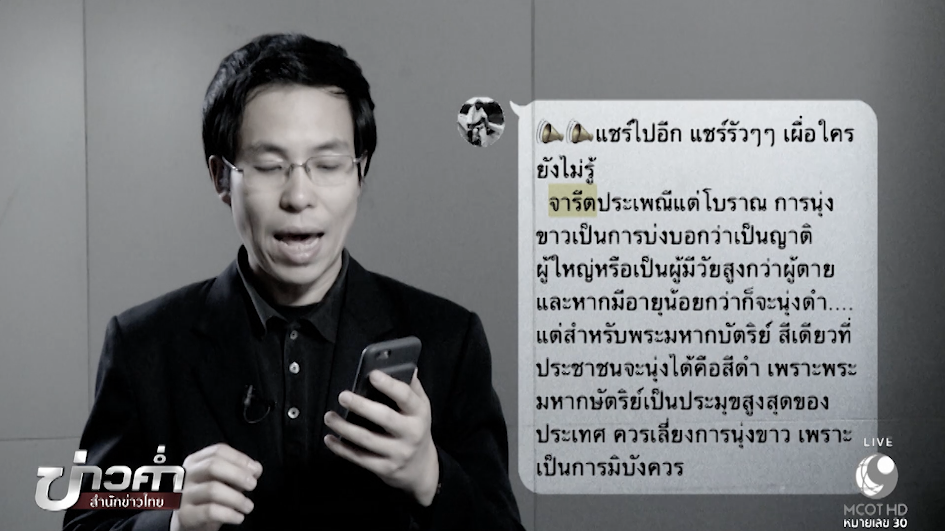 กรุงเทพฯ 16 ต.ค.-บนสังคมออนไลน์มีการแชร์ว่า การไว้ทุกข์ที่ถูกต้องตามประเพณี แก่ผู้ที่อายุมากกว่าจะต้องสวมชุดขาว แต่การไว้ทุกข์ถวายอาลัยพระมหากษัตริย์นั้นต้องสวมชุดสีดำเท่านั้น เรื่องนี้จริงหรือไม่ ติดตามจากศูนย์ชัวร์ก่อนแชร์ .-สำนักข่าวไทย