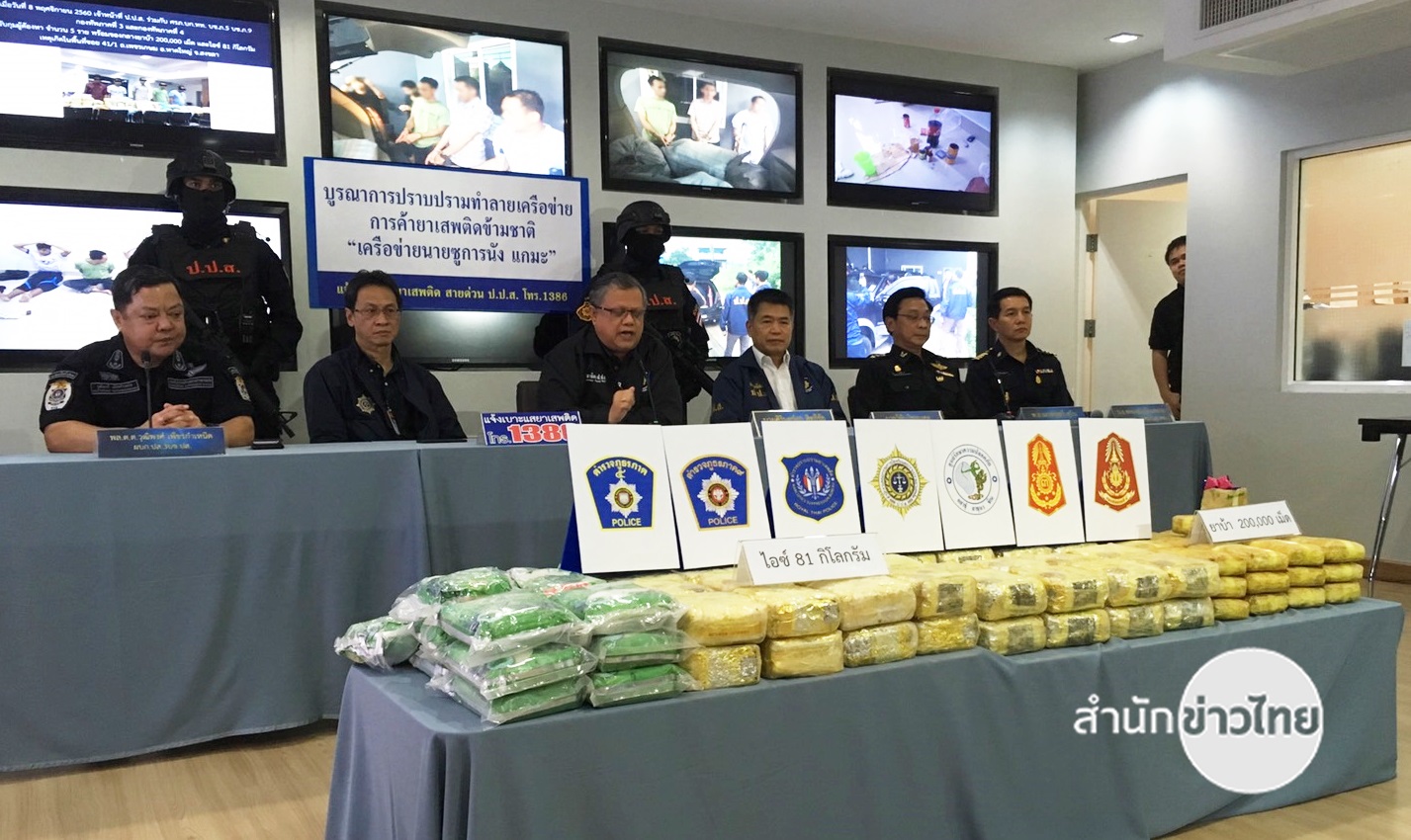 นายศิรินทร์ยา สิทธิชัย เลขาธิการสำนักงานคณะกรรมการป้องกันและปราบปรามยาเสพติด (ป.ป.ส.) แถลงจับกุมขบวนการค้ายาเสพติดข้ามชาติเครือข่ายนายซูการนัง แกมะ กับพวกรวม 5 คน พร้อมของกลางไอซ์ 81 กิโลกรัม และยาบ้า 200,000 เม็ด โดย ป.ป.ส. ร่วมกับตำรวจและทหาร หาข่าวจนทราบว่ามีการลำเลียงยาเสพติดจากประเทศเพื่อนบ้านเข้ามาทางภาคเหนือไปยังประเทศเพื่อนบ้านทางภาคใต้ จึงเฝ้าติดตามกระทั่งจับกุมผู้ต้องหาได้ที่อำเภอหาดใหญ่ จังหวัดสงขลา เมื่อวันที่ 8 พฤศจิกายน ที่ผ่านมา