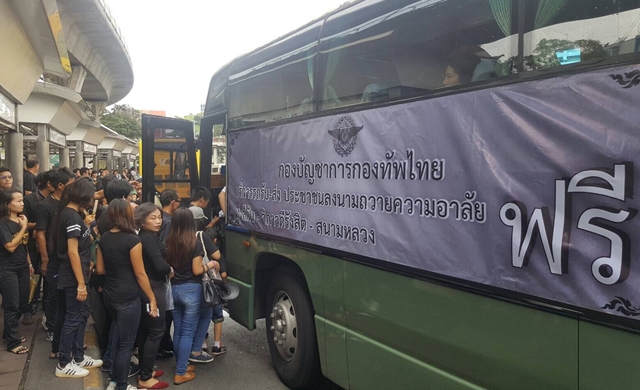 กรุงเทพฯ 16 ต.ค.-กองทัพไทยจัดรถบริการรับ-ส่งประชาชนไปร่วมถวายสักการะพระบรมศพ พระบาทสมเด็จพระปรมินทรมหาภูมิพลอดุลยเดช